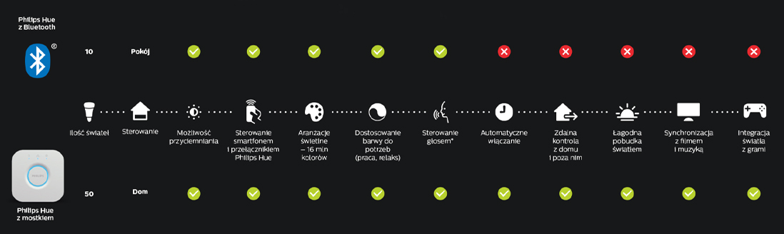 wszystkie produkty Philips Hue Bluetooth działają z mostkiem Philips Hue